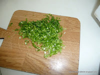 Se toaca marunt usturoiul verde (daca nu mai e sezonul lui, puteti toca cozi verzi de ceapa si 2 catei de usturoi pisati bine).