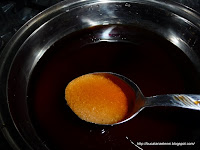 Se adauga lichidele si se amesteca. Am pus aceasta imagine nu pentru ca n-ati sti sa amestecati niste ingrediente, ci pentru ca sa vedeti ca nu trebuie sa fie foarte inchis la culoare sosul. Daca ati folosi sos de soia dark, ar fi prea intens colorat si prea sarat.