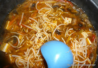 In mare, aceasta inseamna o supa chinezeasca ce contine multe legume si proteine. De obicei este un amestec de carne si creveti + tofu, legume, sosuri, condimente. Se consuma fierbinte si este foarte hranitoare. Cu toata dragostea pentru gastronomia asiatica, nu pot combina tipuri diferite de proteine, asa ca am facut o varianta cu pui - dar nu am poze, deci trebuie sa o refac! - si cu... tofu!