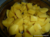 Cartofii taiati felii sau cuburi i-am pus la fiert la aburi pentru circa 20 de minute.