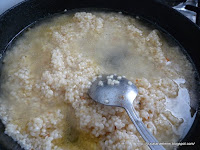 Se adauga cate putin din supa, circa jumatate si se fierbe pe jumatate orezul.