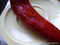 Ardeiul il puneti in tigaia incinsa cu 1 lingura de ulei si il perpeliti pe toate partile, invartindu-l cateva secunde pe fiecare parte si apoi il scoateti pe o farfurie si il decojiti. Ardeiul nu trebuie sa se inmoaie, ci doar sa poata fi decojit.