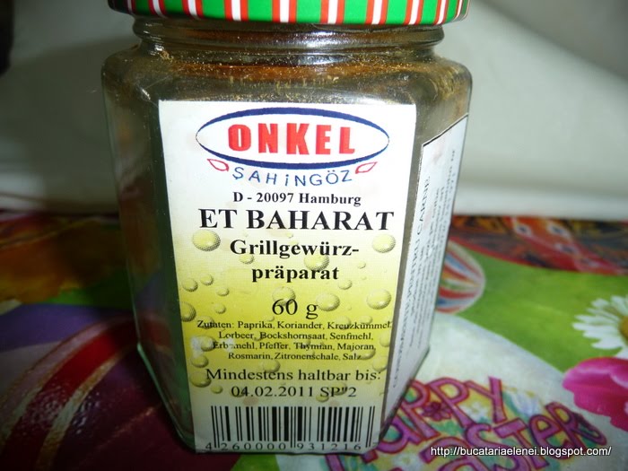Ana-Maria, a fost foarte bun. Ei, eu si condimentele suntem prieteni vechi. Acest amestec l-am luat dintr/un magazin turcesco-arabesc. Are vreo 5-6 variante. Mie imi plac pentru ca sunt doar plante, seminte, fara sare si aditivi. Daca intri la Radu Popovici(Retetele lui Radu, de la mine din blogroll)pe blog, are informatii despre condimente si cum se pot folosi foarte multe. Dar, acestea din Orientul Apropiat le cunosc mai mult de la amici provenind din zona.