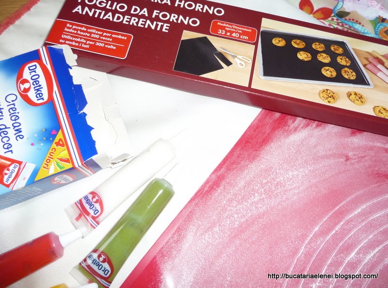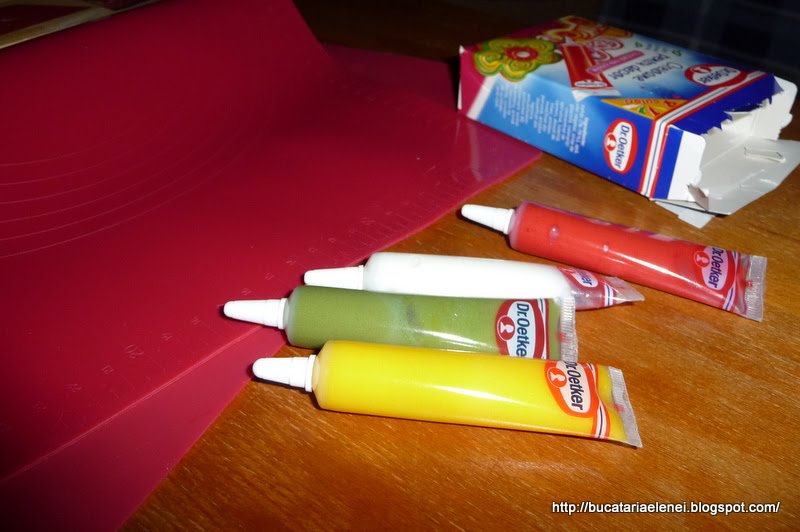 Iar in aceste imagini sunt tuburile cu pasta de zahar colorata de la Dr. Oetker pentru ornarea torturilor.