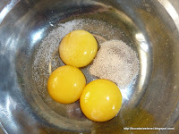 Am pus galbenusele intr-un vas cu un praf mic de sare si zaharul vanilat bourbon.