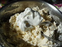 Se adauga albusurile batute spuma cu zaharul, ca pentru bezea, adaugandu-l in 2-3 etape, amestecand usor.