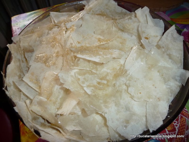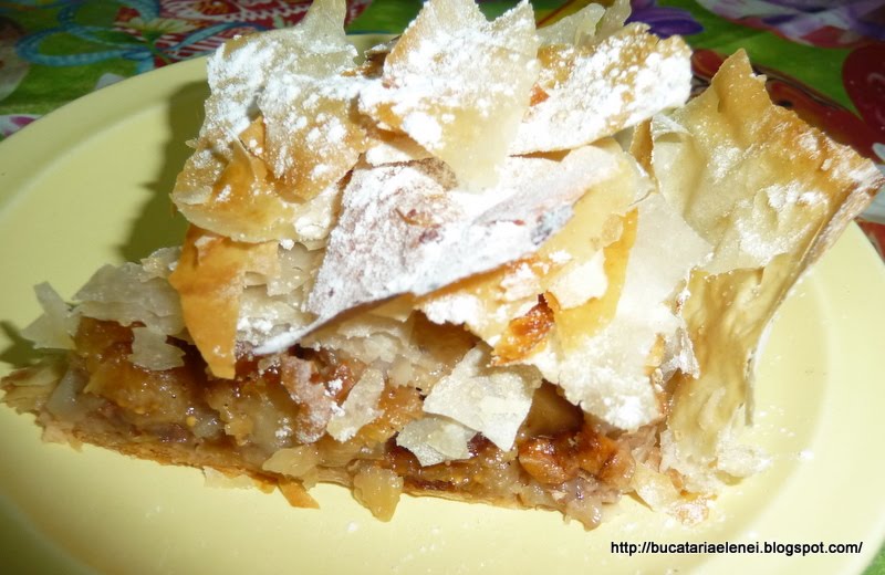 Se taie felii numai dupa ce se raceste, cu atentie sa nu se farame de tot foile coapte de deasupra.
