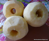Se curata merele si se scoate miezul.