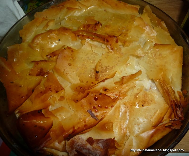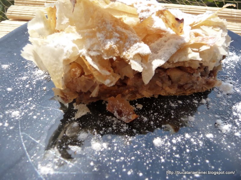 Aceasta prajitura o faceam inainte cu un aluat preparat de mine in foi subtiri, dar nu iesea asa grozav. Saptamana trecuta am vazut faza asta de impachetare si infoiere intr-o emisiune pe Euforia TV, dar cu alta umplutura. Mi s-a parut deosebita si am zis sa incerc. A meritat pe deplin, iar umplutura, nu foarte dulce, este aromata si usoara. Singura problema cu foile de cumparat este ca trebuie sa te misti repede, pentru ca se usuca foarte usor! Eu zic sa incercati si asa, iar surpriza va fi foarte placuta.
