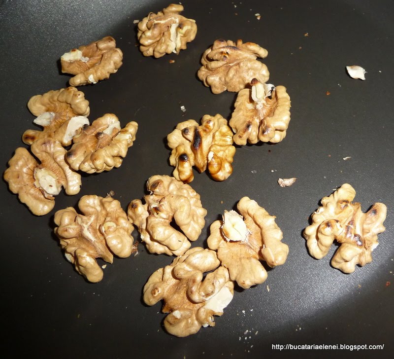 Separat, puneti miejii de nuca in tigaie pe foc mic, fara adaos de grasime si prajiti-i usor.