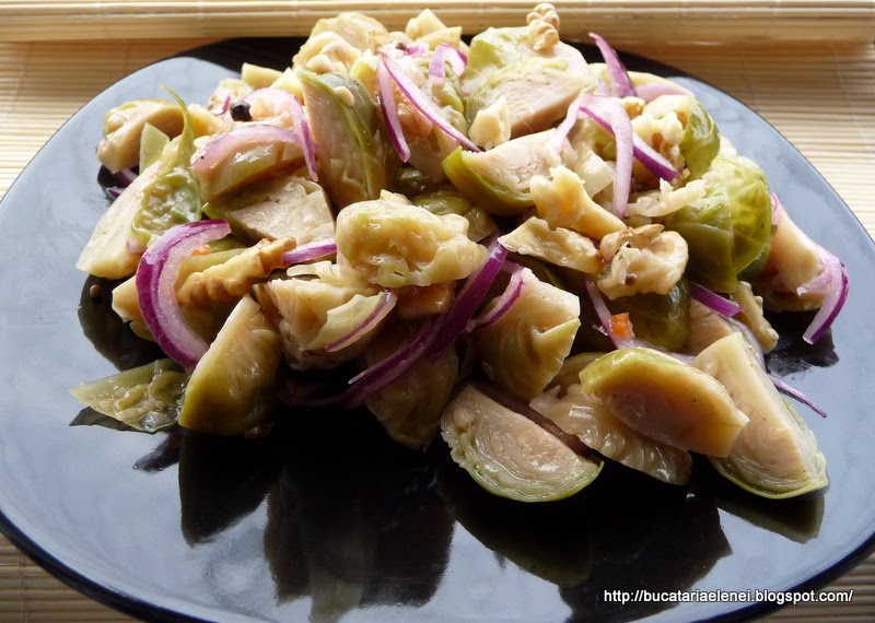 RăspundețiȘtergereVarza de Bruxelles nu e chiar printre preferatele mele insa reteta dvs pare delicioasa,am sa o incerc cu proxima ocazie cand voi cumpara varzuci din astea. O seara placuta!