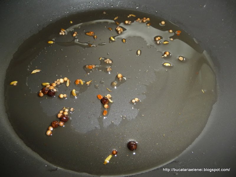 Cat se mai racesc putin verzisoarele, preparati bagharul. Intr-o tigaie groasa, incinsa puneti uleiul, inclinand in toate directiile ca sa se incalzeasca uleiul si se adauga condimentele. Se lasa la foc mediu atata cat se incinge uleiul bine si semintele incep sa pocneasca si sa dea aroma uleiului.