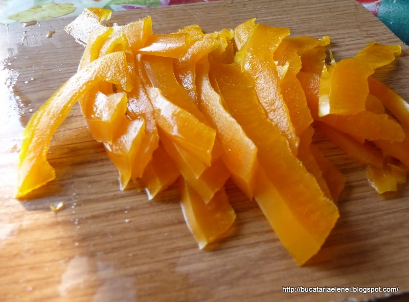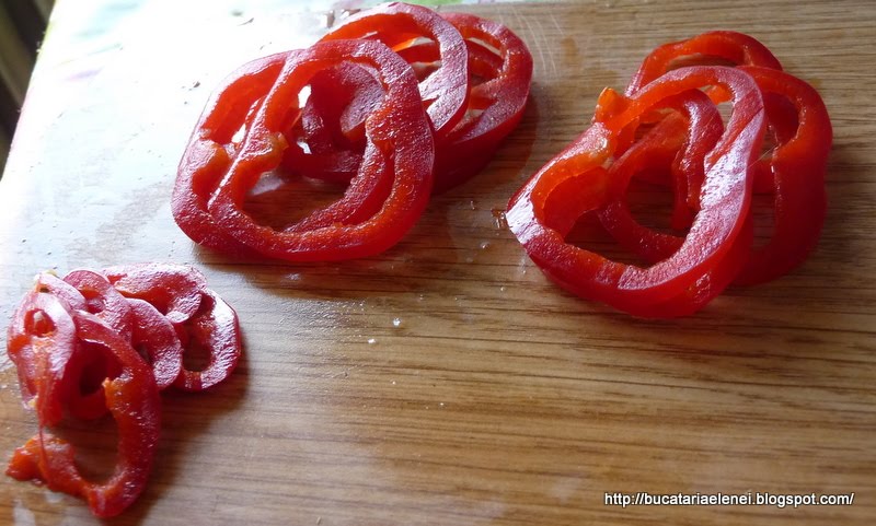 Se toaca ardeiul kapia si cel iute rondele subtiri.