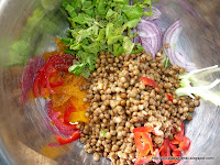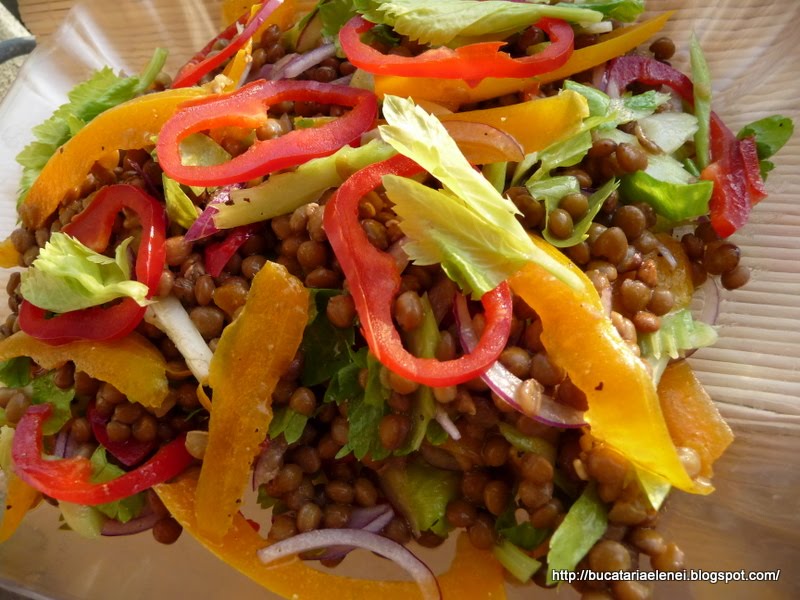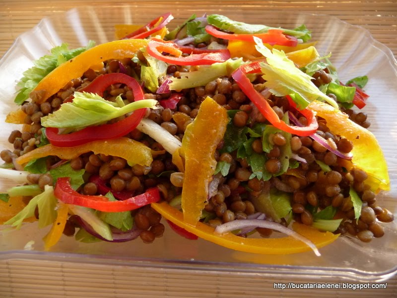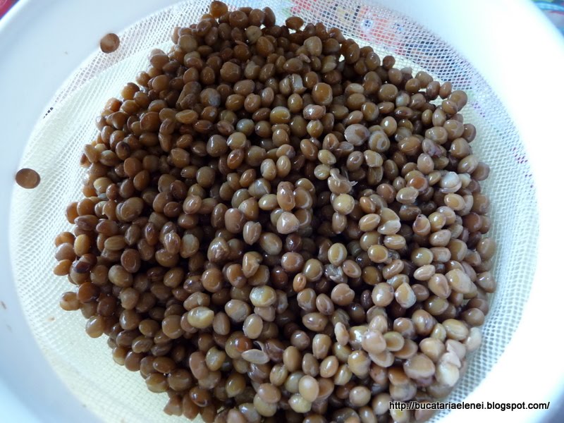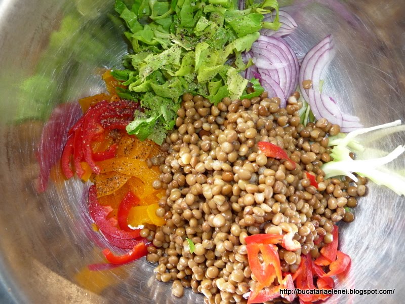 Se amesteca usor, cu o paleta, ca sa nu se sfarame boabele de linte si se lasa cel putin 10 minute, sa se amestece gusturile.