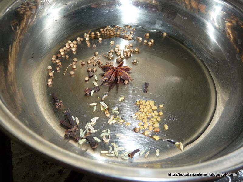 Am pus uleiul si condimentele intr-un vas mai adanc si le-am incalzit putin.