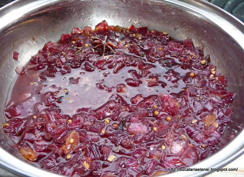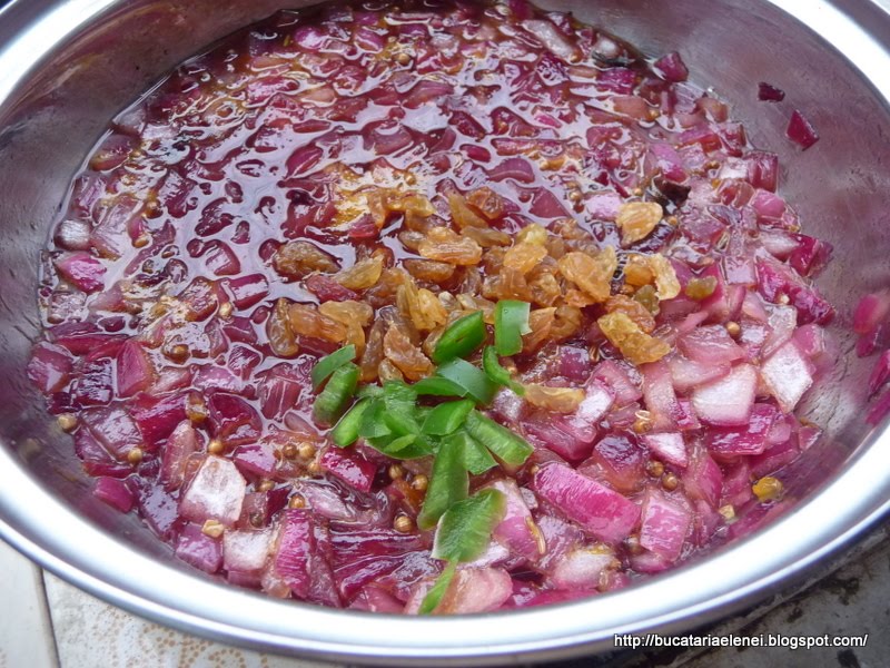 Pentru ca la puiul ala afumat am garnisit cu chutney de ceapa, m-am gandit sa va arat cum l-am facut, acum ceva vreme. Eu folosesc acest "sos" de vreun an si ceva, mai ales la carne de pui sau vanat. Are o aroma deosebita si m-a incitat. Este unul din elementele noi descoperite, deci n-are nimic de-a face cu gastronomia romaneasca. A fost preluat in Europa de englezi, adica adus din India natala. Desi nu este chiar una din combinatiile noastre traditionale - dulce si sarat impreuna la o masa - mie mi-a placut. De mango fac mai rar, pentru ca folosesc fructul mai mult la deserturi, dar vreau sa incerc in toamna asta din gogonele, acesta fiind la fel de popular in Anglia ca si cel de mango. Partea proasta este ca avand continut de zahar ridicat, nu prea este potrivit la dieta. De aceea il consum in cantitati mici de cand sunt la dieta, dar nu ma pot abtine. De data aceasta, alaturi de carne (Proteine) este o greseala, dar ce pot sa fac? Puiul ala afumat si picant mergea teribil cu acest sos!