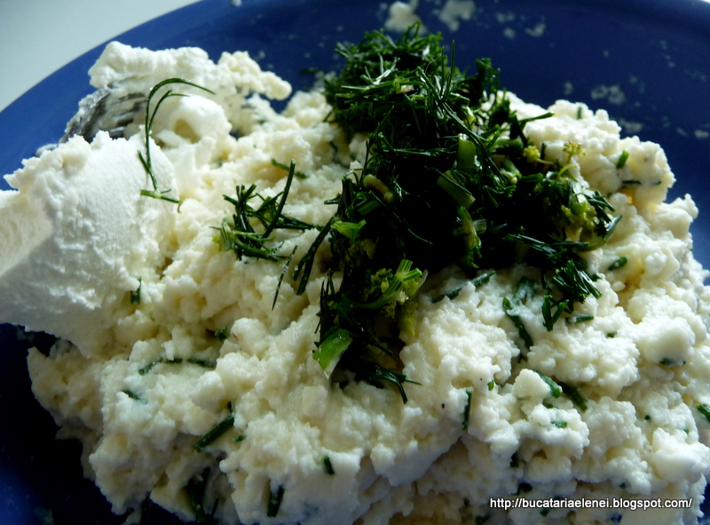 Le supunem unui proces de transformare intr-un amestec cremos prin adaugarea de smantana, chives tocat si marar. Nu va starniti nervii si sa le traumatizati cu mixerul, ca daca mai raman bucatele mici este mai rustic si mai bun, dupa parerea mea.