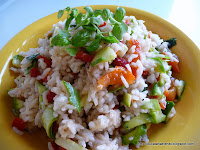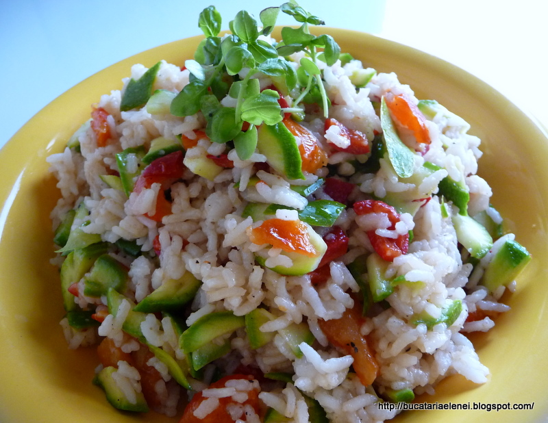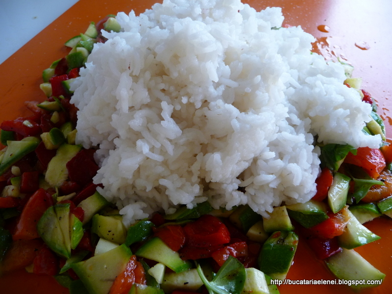 Dar... orezul fierbinte se va aduna in bulgari daca nu va ajutati cu mana pentru incorporarea legumelor.