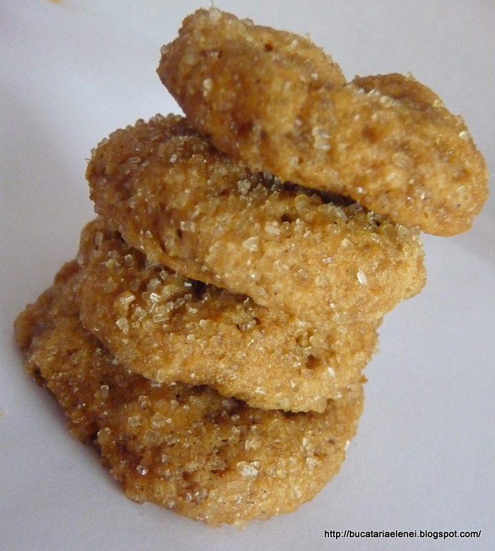 In octombrie anul trecut Mihaela a lansat o provocare numita "Dulce Romanie", un proiect drag mie, ce a reusit o punere in valoare a inventivitatii participantilor de a prepara cu niste ingrediente vedeta, care sa aminteasca de Romania, chiar daca se foloseste un ingredient exotic. Provocarea s-a extins de la o luna la alta, tot mai multe bloguri participand cu preparate din ce in ce mai interesante. Gazda lunii decembrie este Brandusa cu al ei blog Cooking with my soul, iar propunerea ei este sa folosim ca vedeta ghimbirul si sa nascocim niste prajiturele pentru Craciun. Pentru mine au venit la tanc, pentru ca de multe vreme vroiam sa fac niste fursucuri cu ghimbir. Am mancat niste prajiturele cu ghimbir la un ceai si, desi am facut multe incercari, nu erau ca alea. Cu aceste fursecuri sunt aproape de acelea, care era divine.Aceasta reteta este pentru ziua de Carbohidrati de la Dieta Rina - Dieta de 90 de zile