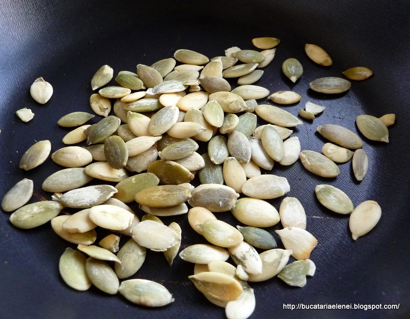 Miejii se pun la prajire usoara in tigaia fara grasime.