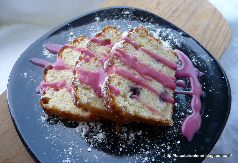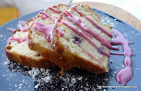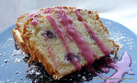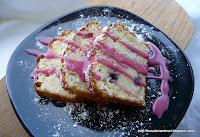 Eu am frecat zaharul pudra cu zeama de lamaie si sucul de zmeura, formandu-se o glazura numai buna, aromata, pentru cake. Am taiat felii, am glazurat feliile pentru efect, desi puteam s-o fac inainte de taiere in felii, am pudrat cu putin zahar si... am gustat si eu. Normal!