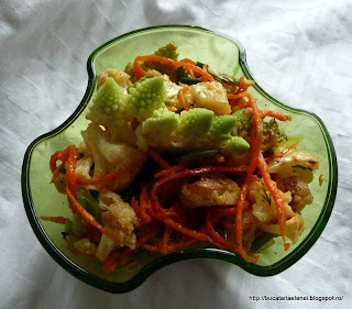 RăspundețiȘtergereA fost excelenta si fresh. Gustul mai delicat al acestei conopide verzi (romanesco) si "ramele" de morcov care au absorbit din gustul dressingului foarte bine a facut sa nu mai fie o salata banala.