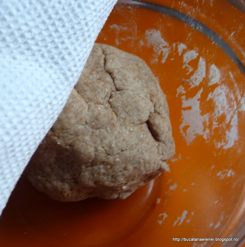 L-am lasat la odihna 20 de minute, acoperit cu un prosop de bucatarie (nu cu folie ca se umezeste aluatul).