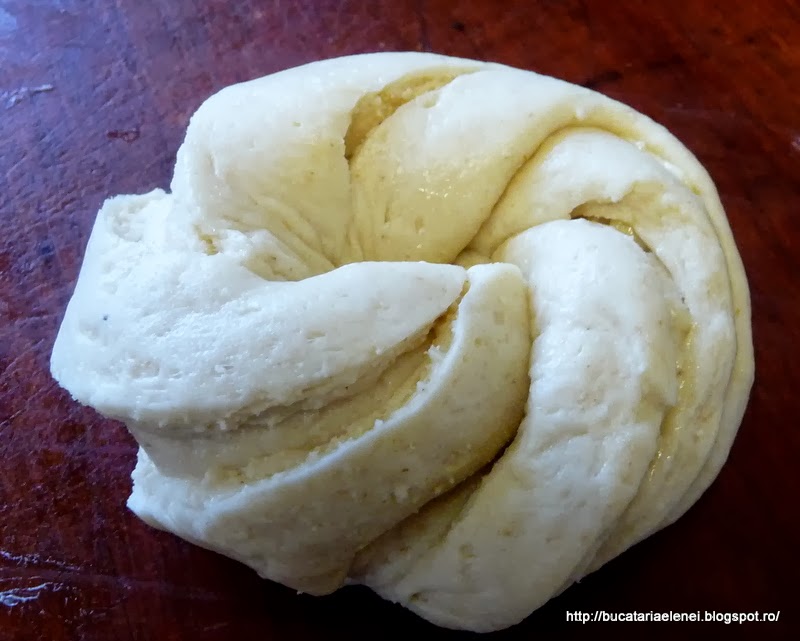 Pai, m-au inebunit fetele pe Facebook cu coronite. Asa, ca sa stiti, mai am doua variante pe care vreau sa la incerc, una de la Pokhas, de la care am imprumutat metoda, si una de la Meryem, care propune niste umpluturi care m-au facut curioasa. Dar, de data asta s-a nimerit sa o fac asa pentru ca aveam aluat la dispozitie, aluat foarte bun. Atunci, solutia a fost aceasta coronita speciala ca tot e ziua mea azi! Hai sa v-o arat, chiar daca e una deocamdata. Cand o sa apara celelalte variante o sa fac un sir din ele, ca sa aveti la ce pofti. La dieta jumatate ajunge, restul dati si voi cuiva drag.