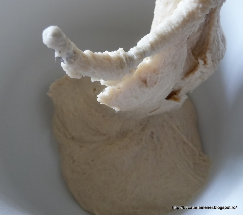 Apoi am adugat uleiul si cam asta a fost. E molcut, ia uite cum cade de pe carligul de framantat.