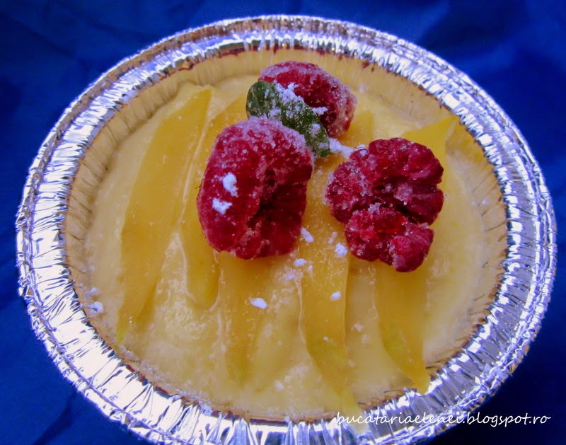 50 ml piure sau feliute subtiri de mango de acoperit budinca (pentru a nu face coaja)