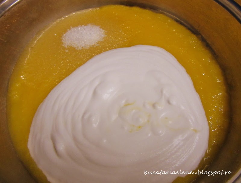 Este foarte usor de facut, asa ca nu va asteptati la cine stie ce explicatii. Eu am curatat fructul de mango, l-am taiat feliute si am mixat pana am obtinut piureul. Am oprit cateva feliute pentru acoperit budinca.