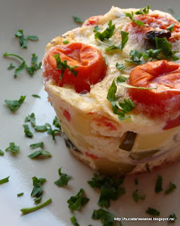 De aceasta budinca mi-am adus aminte de curand. Am zarit printr-o revista din asta de sezon - zau ca nu mai stiu care, deci nu dati cu parul - o propunere de asa ceva si asta mi-a trezit o multime de amintiri. Pe bunica din partea mamei am avut-o foarte putin printre noi si era obligata saraca sa hraneasca o ciurda de copii pentru ca eu, invariabil ii aduceam la masa pe prietenii ocazionali de joaca. Partea buna ca cel mai des ma limitam la verii mei ceva mai mari, dar nu intotdeauna. Cum era greu sa faca fata altfel lua ceva din gradina, punea la fiert in cuptorul din bucatarioara de vara si apoi ne facea niste turte coapte pe plita sau o mamaliga mare din care luam fiecare cate o bucata si ne inghionteam la masa cu trei picioare. Vremurile au trecut demult, amintirile se sterg sau se estompeaza, mai ramane o senzatie vaga a unor gusturi pe care nu le mai regasesc. Mai tarziu, la tatal meu adoptiv, gradina mare, raiul legumelor pentru mine. Tata era viticultor, deci era o mare problema sa-l conving sa cultive fiecare bucatica de pamant ramasa libera, chiar si intre tufele din vie, unde rasarea nu se stie cum o tufa de ceapa de unde ma alimentam cu codite verzi incepand de primavara pana vara tarziu. Tot asa cu vinete, ardei, rosii, cartofi, salata verde, marar, patrunjel, leustean si altele. Idolul meu culinar, in jurul careia roiam, era o nepoata de-a tatei, femeie cu scoala de pension. De la o familie extrem de mica am intrat la tatal adoptiv intr-o familie foarte mare - asa mi se parea mie - tata fiind penultimul din 9 frati ramasi in viata. Mi-era extrem de greu sa-mi dau seama ce fel de rude eram cu unele din ele, dar cel mai important lucru era ca primisera cu bratele deschise o fetita de7 ani. Dar sa revenim in prezent. Deci, budinca asta o prepara mama vara si era tare buna si rece, cand veneam eu de la scoala. Voi o puteti incerca si in alte combinatii de legume, dar mie imi place asa.